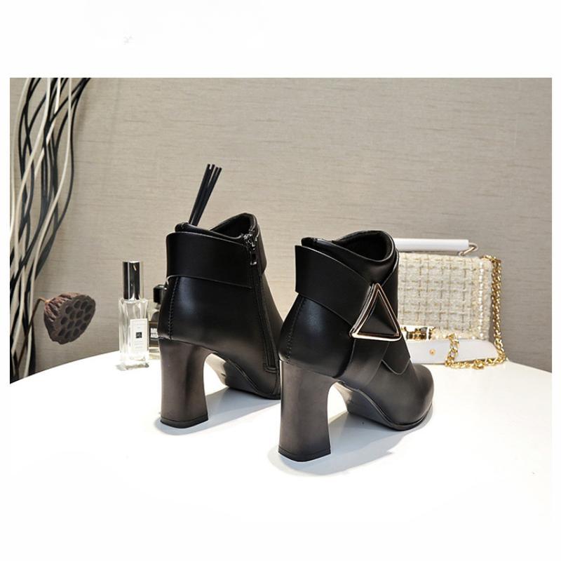 Новые стильные стройнящие ботильоны на толстом высоком каблуке с острым носком для женщин на осень и зиму