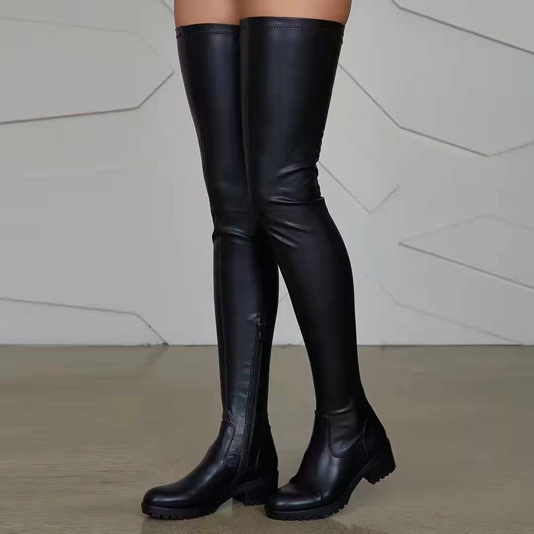 Сапоги выше колена для женщин на толстом каблуке, длинные рыцарские сапоги