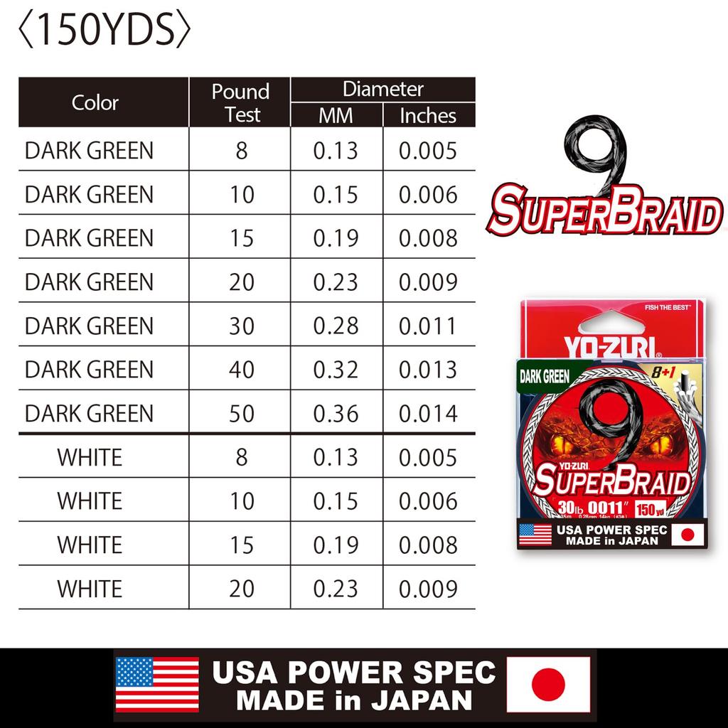 Плетеный шнур PE Super Braid 9 150 ярдов 10 фунтов Белый цвет YO-ZURI
