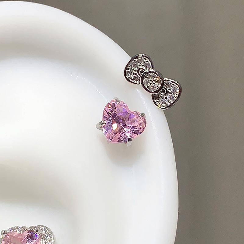 Милый бантик, сердце любви, нержавеющая сталь 316L, кольцевой гвоздик для козелка уха, модная деликатная серьга с цирконом для женщин, Y2K панк-украшение