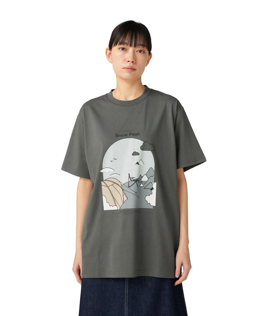 Snow Peak Camping Graphic Short and Size S T-Shirt TS-25AU008, Sleeve, Men's Women's, Gray,