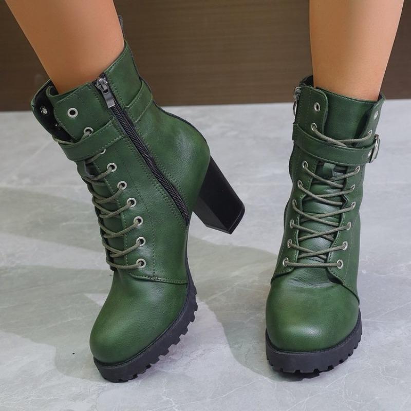 Стильные женские зимние ботинки с очень высоким каблуком, дизайн на платформе, обувь до середины голени в мотоциклетном стиле, созданная для долговечности и комфорта