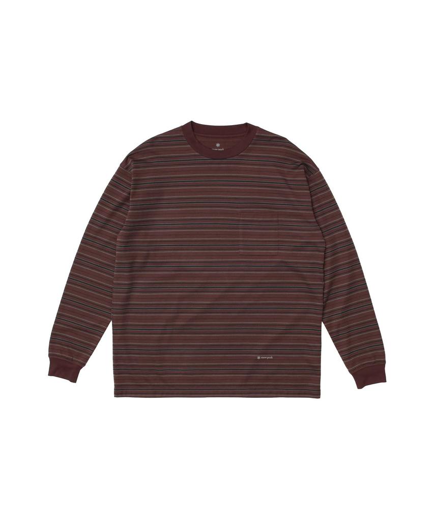 Snow Peak Hybrid Wool Mesh Stripe Cut and Long and Size L L/S T-Shirt SW-25AU014, Sew, Sleeve, T-Shirt, Men's Women's, Brown,