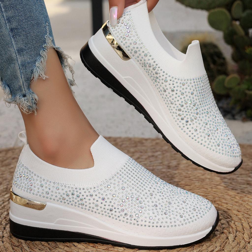 Большие размеры, повседневная спортивная обувь для пар со стразами и мушкой, 2024 г., новые дышащие легкие женские туфли