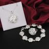 Серебряный Шарм Цветок Ожерелье Серьги Браслет Ювелирные Изделия для Женщин Ретро Набор Свадебный Подарок ТРЕНДОВЫЙ Милый