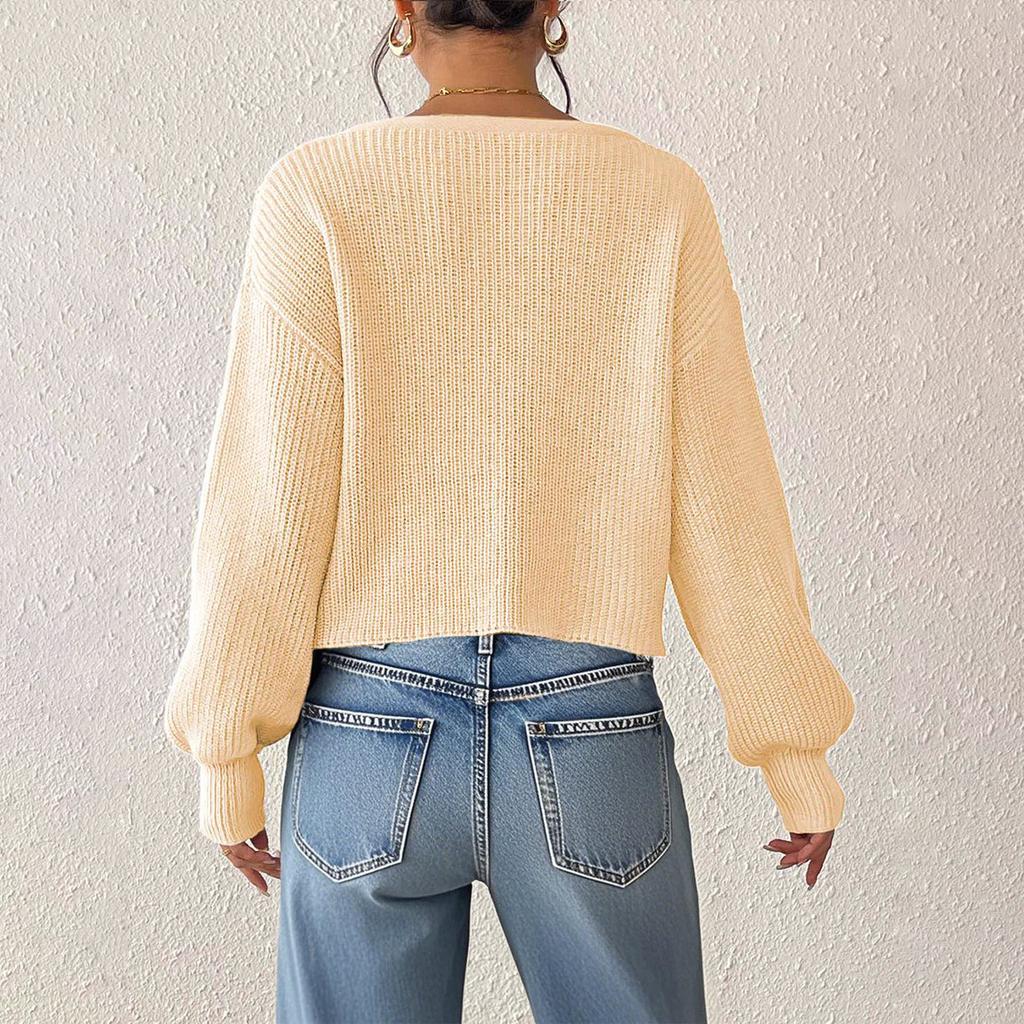 Женский однотонный кардиган на пуговицах с глубоким V-образным вырезом, короткая куртка свободного кроя, повседневный топ