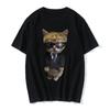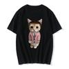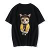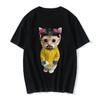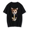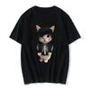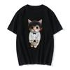 Смешная футболка с котом Хип-хоп стиль Рисунок котенка Наряд Уличная одежда Черная футболка с коротким рукавом Женская Летний пуловер с круглым вырезом