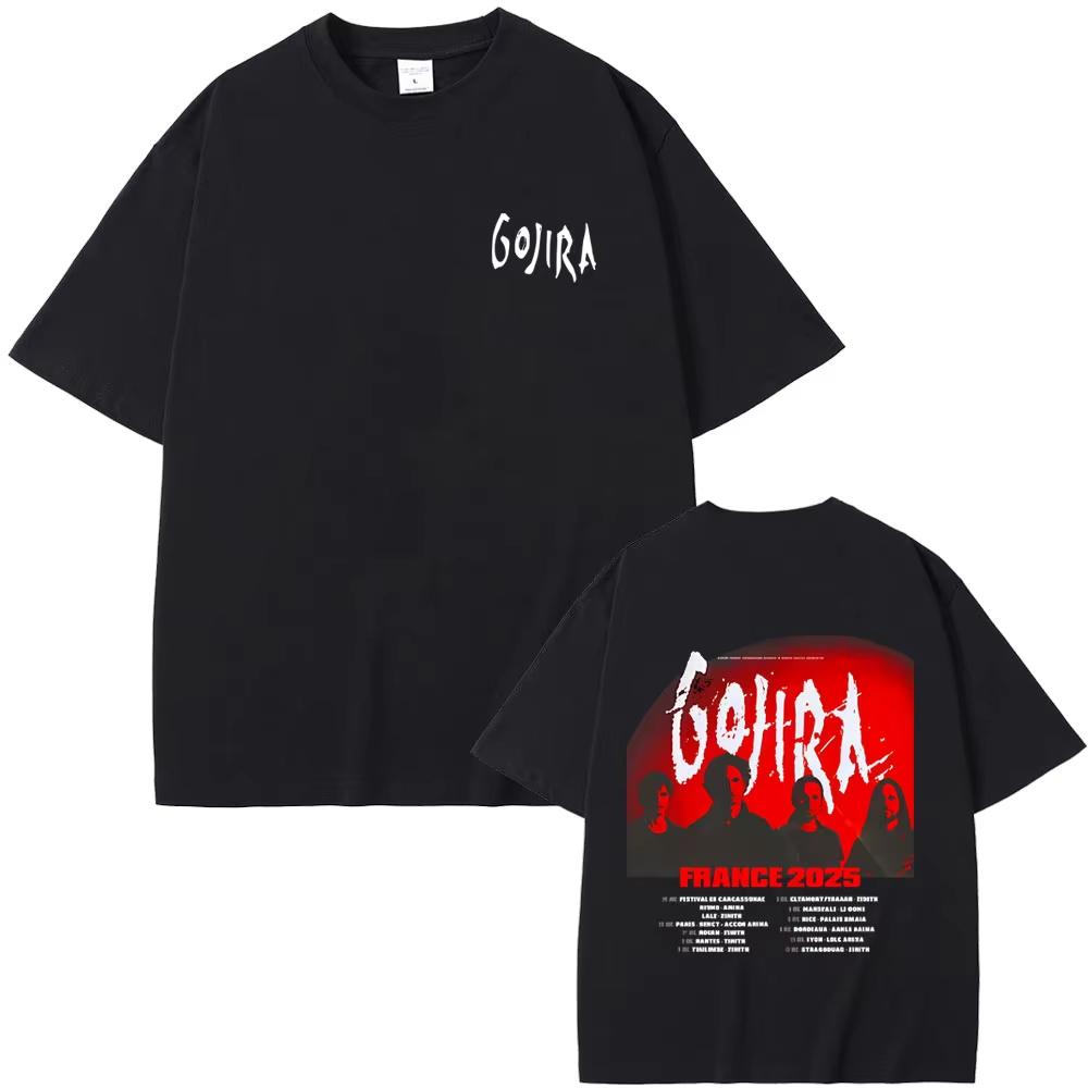 Футболка мужская женская с метал-группой Gojira Тур по Франции 2025 Одежда Готический рок Футболка оверсайз Мужская повседневная хлопковая винтажная футболка