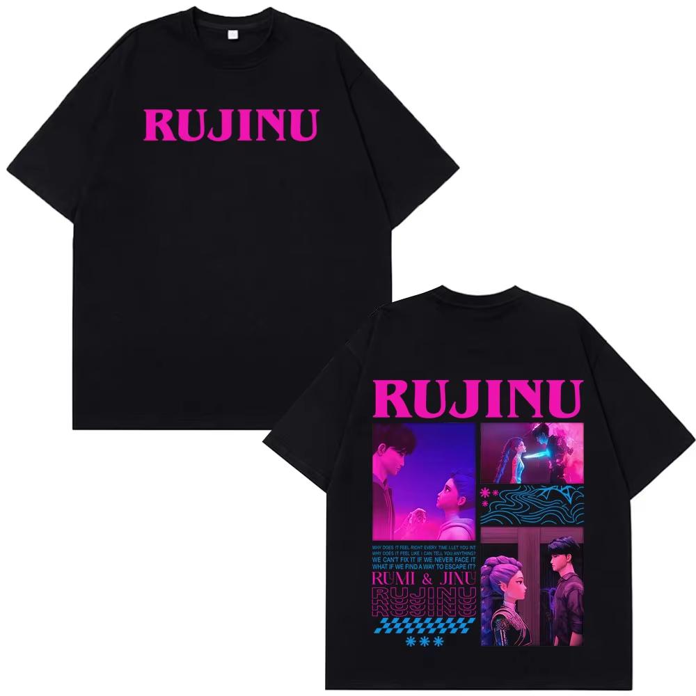 K-pop Охотники на демонов Huntrix Saja Boys Руджину Принт Принт Футболка Мужская Женская Эстетичные футболки Харадзюку Парная Хлопковая футболка Топы
