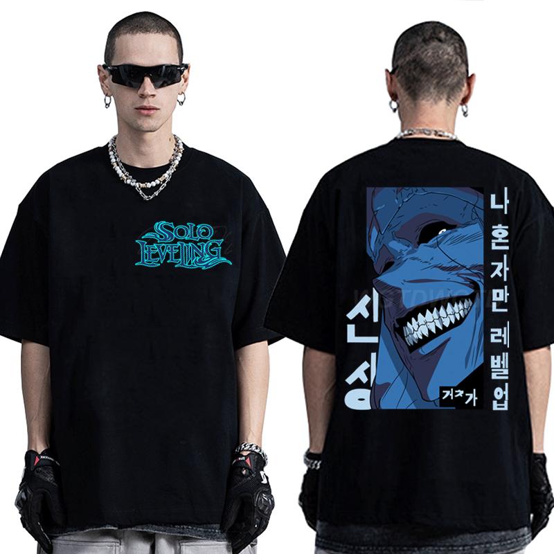 Solo Leveling Уличная Крутая Футболка Топ 100% Хлопок Горячее Аниме Мужская Одежда Харадзюку Уличная Одежда Solo Leveling Аниме Мужская Женская Футболка