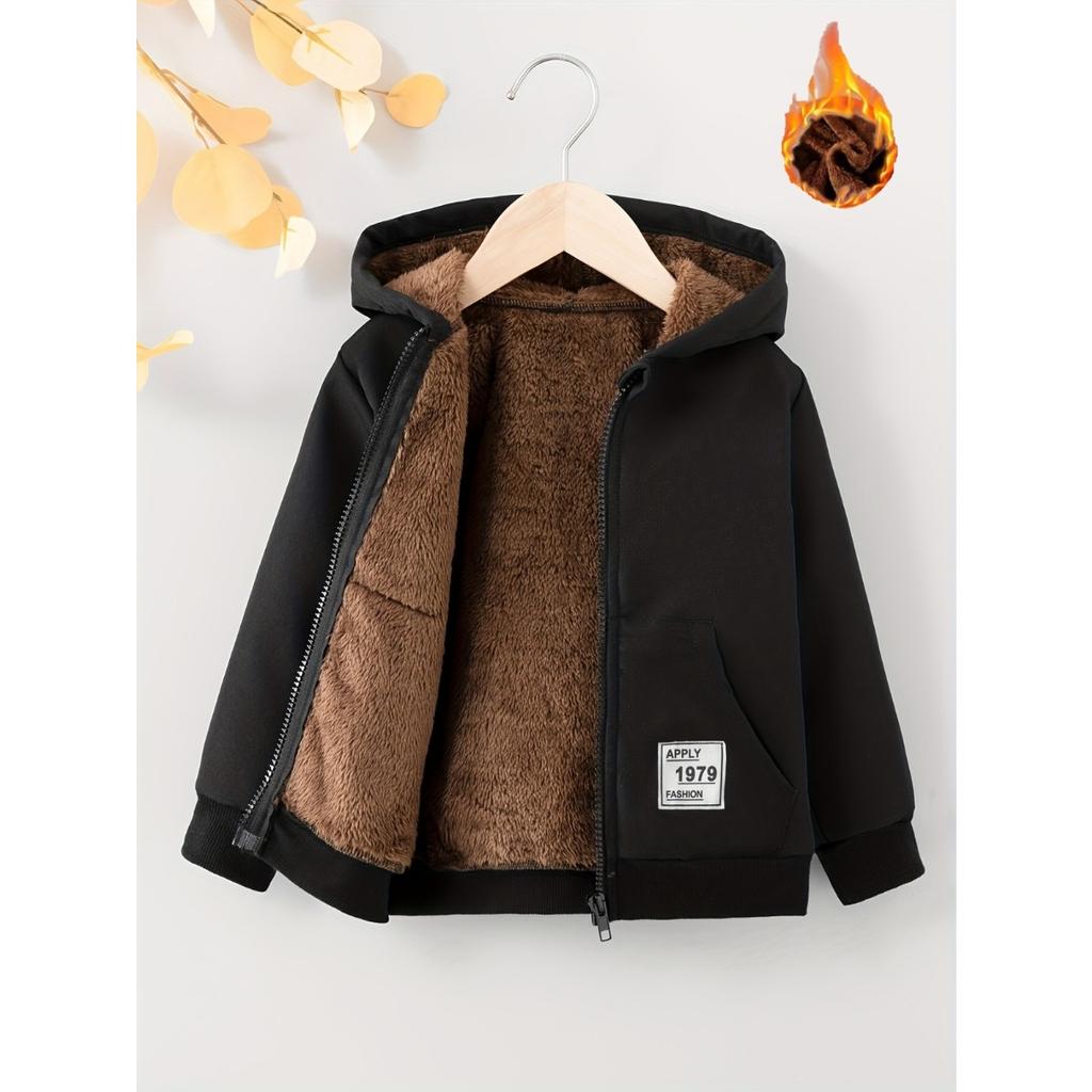 Мальчиковая осенне-зимняя флисовая куртка-композит на молнии с капюшоном
