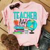 Учительская жизнь Новая летняя футболка с коротким рукавом Мода Женская Графическая Футболка Топ Стильные футболки с принтом Мультяшная женская футболка Футболка