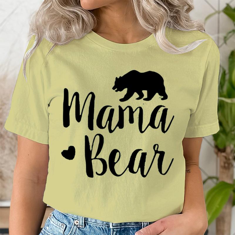 Женская футболка с принтом «Мама-медведица», милые графические футболки, повседневная футболка с коротким рукавом, черная, с круглым вырезом, футболки в стиле харадзюку, топ для мамы в стиле Y2k