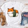 Футболки Харадзюку с принтом суши и лисы, забавная мультяшная футболка, женская футболка в стиле уллзанг, модная футболка 90-х в стиле каваи, графический топ, женская