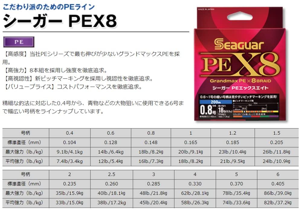 Seaguar Line PE Line Seaguar PE X8 Fishing PE Line 200m No. 1 20lb (9.1kg) Multi