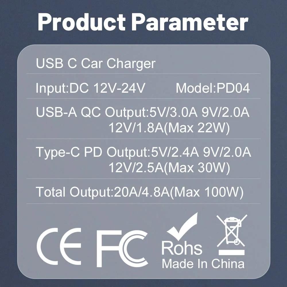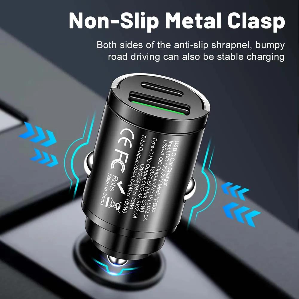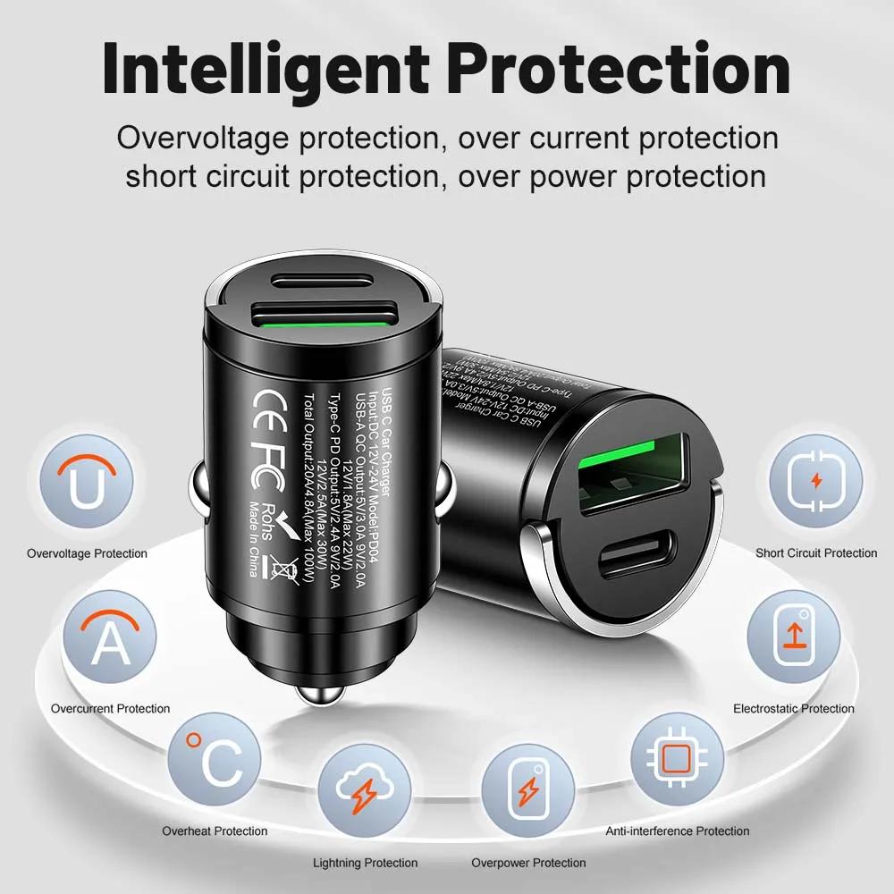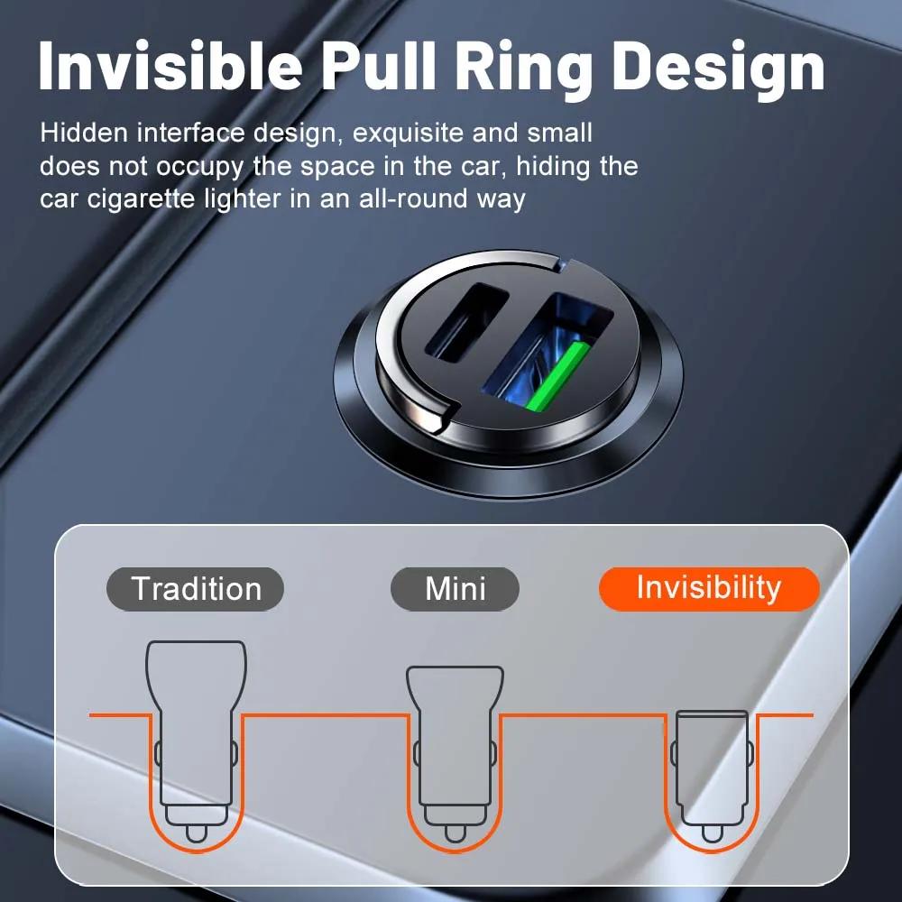 Мини-автомобильное зарядное устройство 100 Вт с кольцом для вытаскивания, быстрая зарядка QC3.0 PD 12-24 В для iPhone, Xiaomi, Samsung, Huawei, универсальное для всех моделей автомобилей