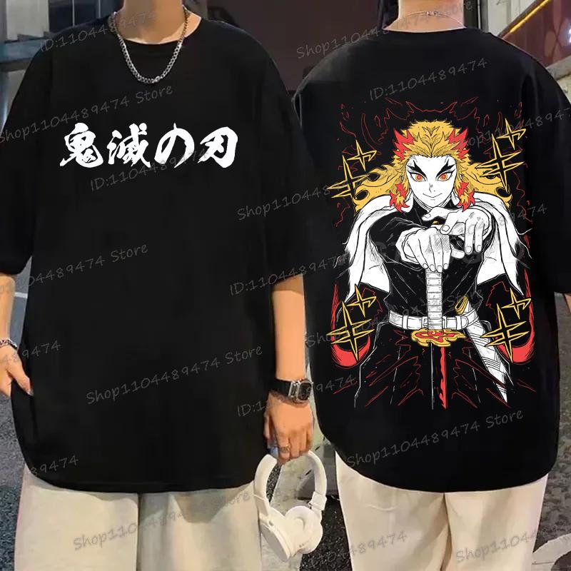 Аниме Клинок, рассекающий демонов Ренгоку Кёджуро Футболка Мужская Женская Винтажная Крутая Повседневная Высококачественная Хлопковая футболка Харадзюку Комикс Топы