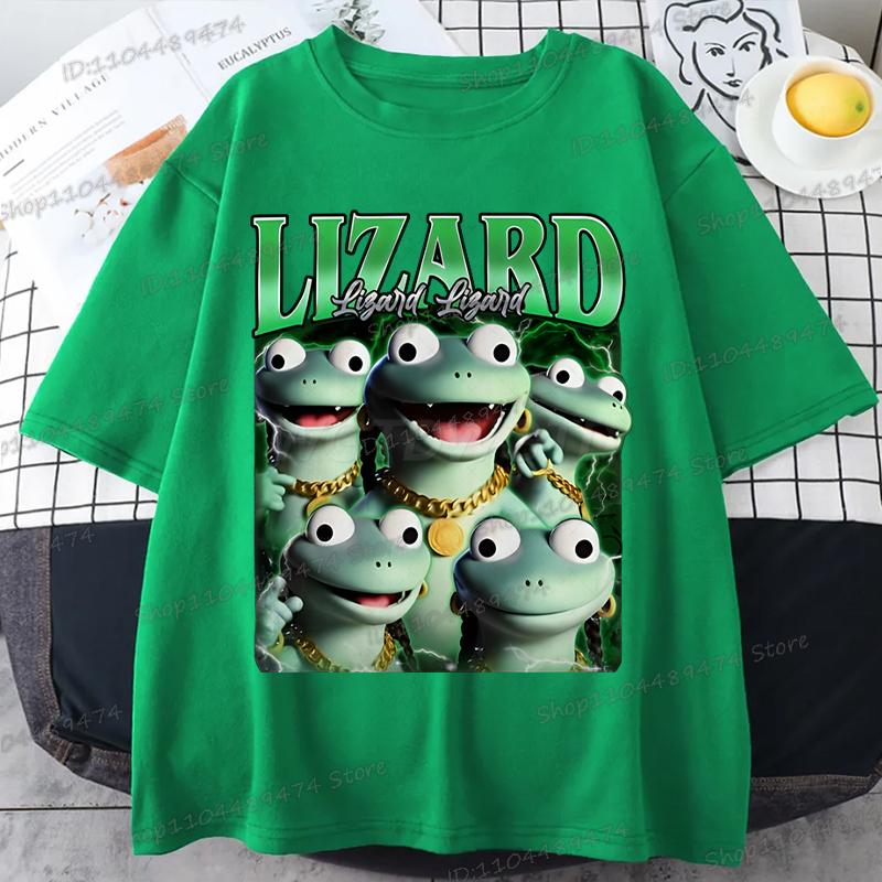 2025 Ящерица Ящерица Ящерица Мем Футболка Мужская Женская Хиппи Винтажная Футболка с Коротким Рукавом Y2K Смешной Дизайн Повседневные Унисекс Футболки