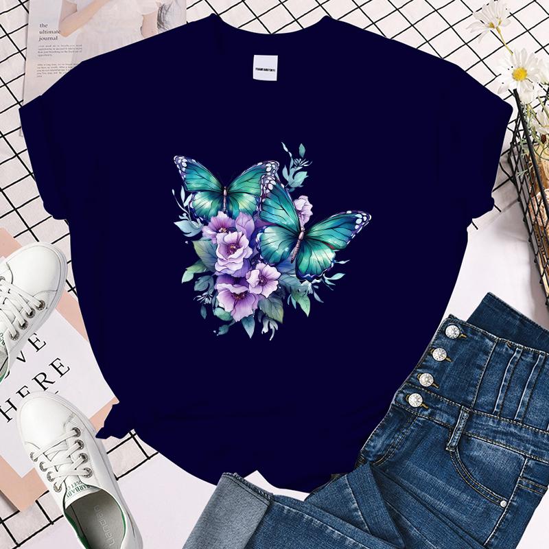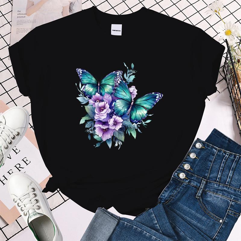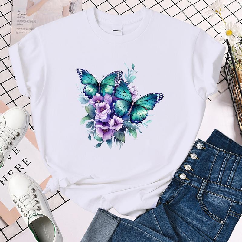 (Премиум-футболка)Забавные футболки с принтом цветов и бабочек для женщин, летние футболки с круглым вырезом, женские модные повседневные футболки