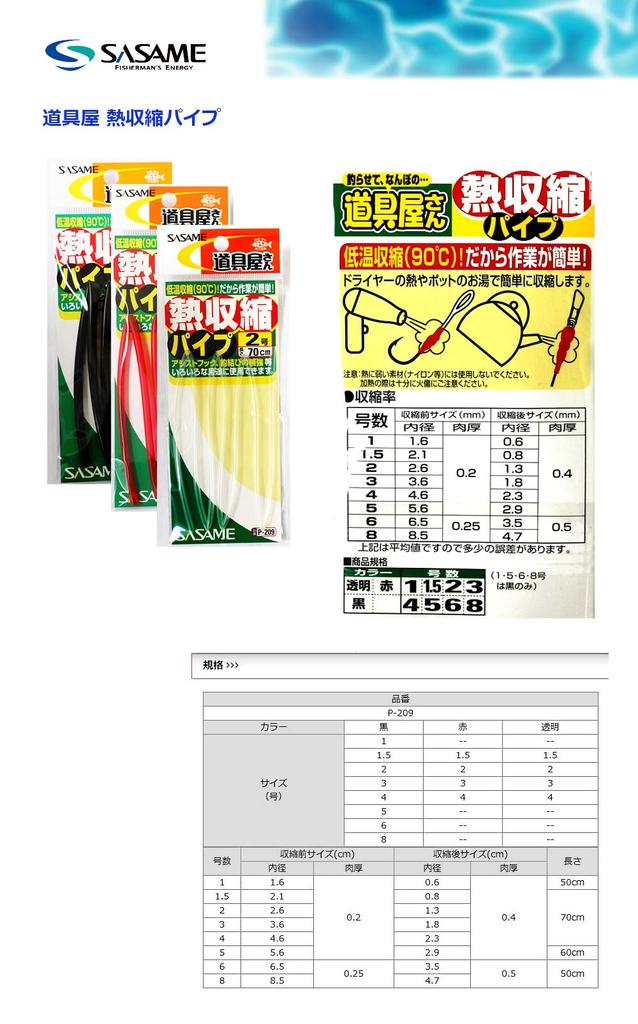 SASAME P-209 Инструментный магазин Термоусадочная трубка, Прозрачная, Размер 2