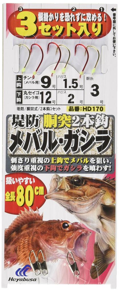 Hayabusa Pier Rockfish and Black Rockfish Fishing Rod with 2 Hooks, 3-Pack, 9-1.5mm, HD170-9-1.5
