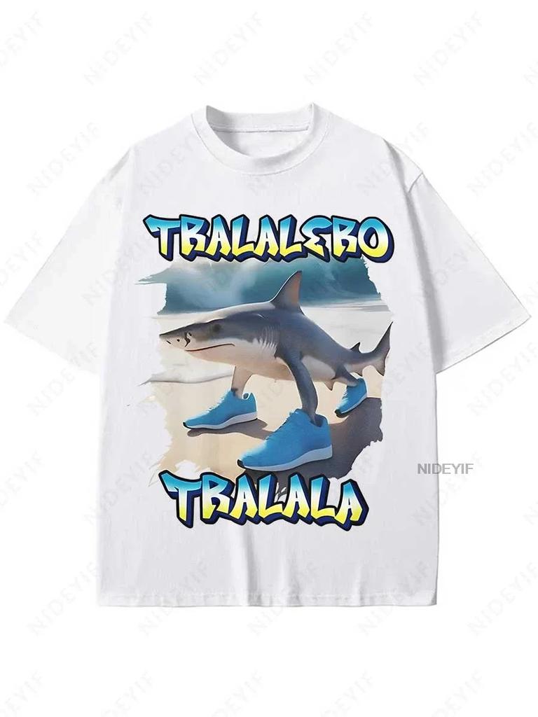 Тралалеро Тралала Смешная футболка с мемом про акулу Подарки Женская мода Готические винтажные футболки Повседневная футболка Повседневная футболка