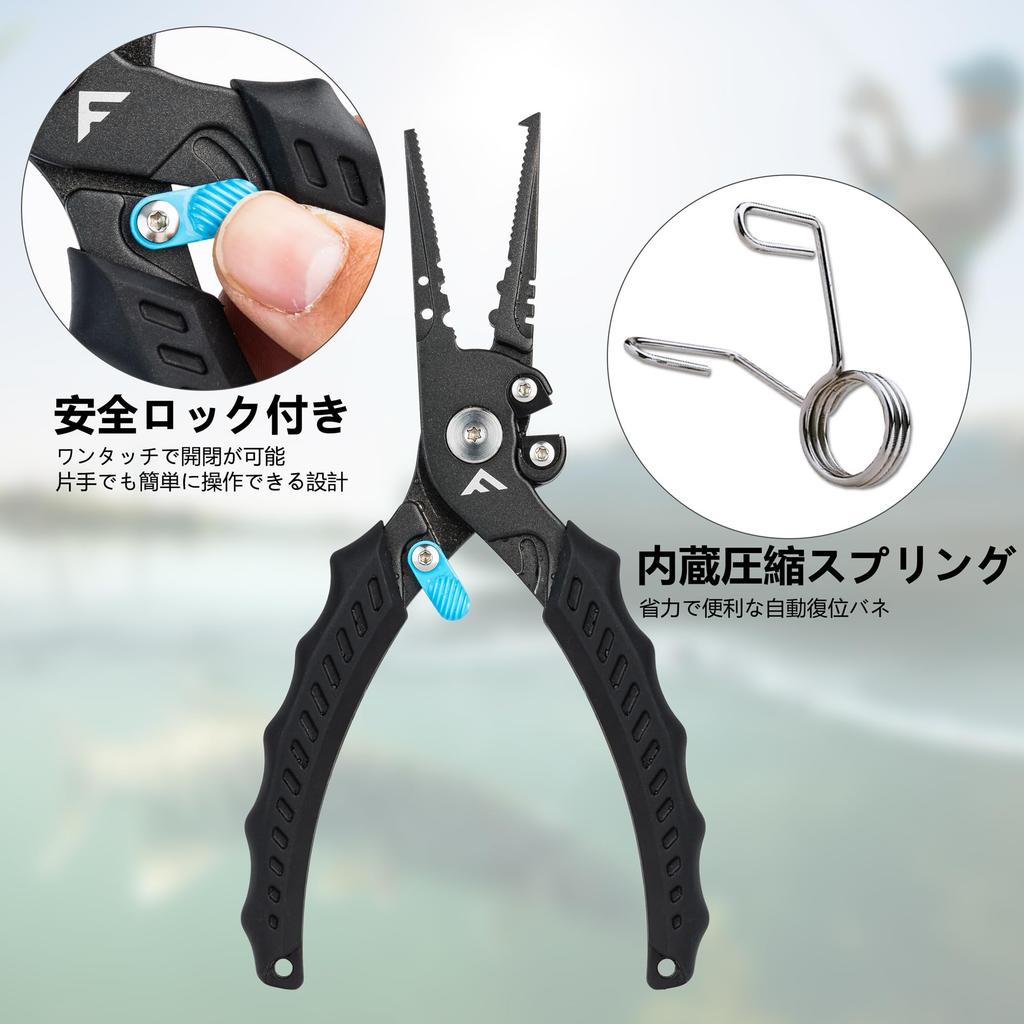 FLISSA Fishing Pliers, Split Ring Pliers, Hook Remover, Needle Remover, Line Cutter, Locking Mechanism, Rope, Carabiner, Loss Prevention,