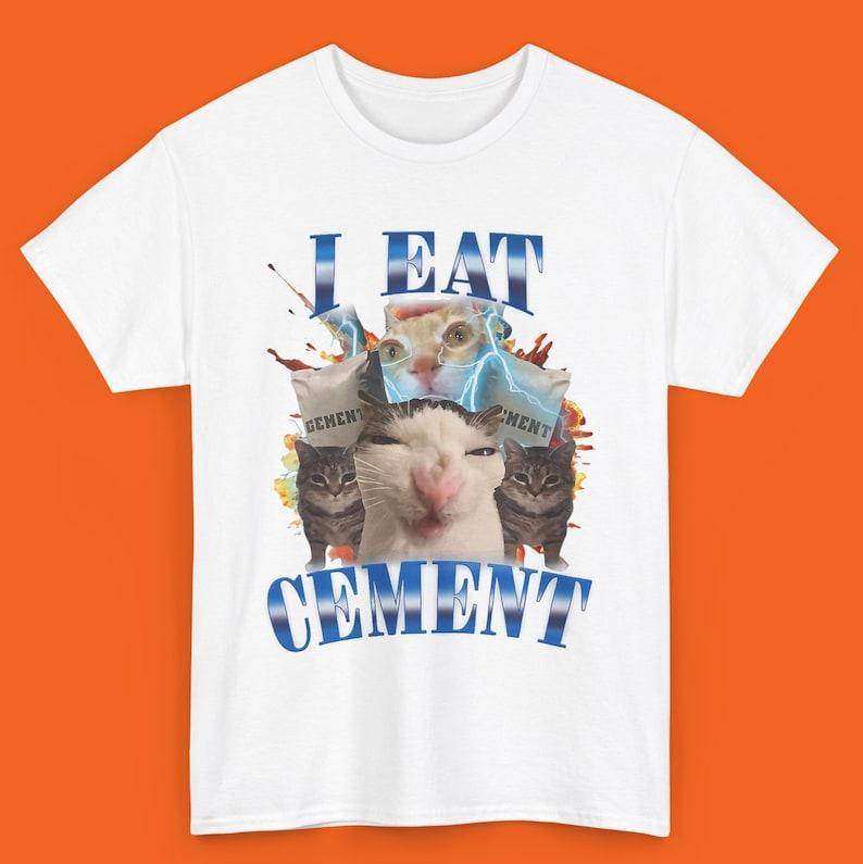 Я ем цемент футболка проклятый кот смешной кот мем футболка подарок для женщины мужчины глупые подарки уродливые рубашки безумная кринжовая футболка