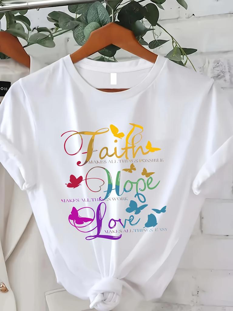 Butterfly Print T-shirt Summer Spring Short Sleeve Butterfly Print T-shirt Women's Casual Round Neck Top women clothing