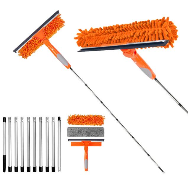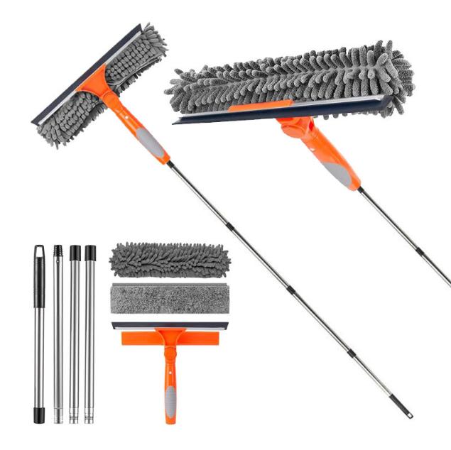 Набор инструментов для мытья окон с удлиняемой ручкой 2 в 1 Двусторонний инструмент для мытья и пыли для окон Вращающаяся на 180° швабра для окон с длинной ручкой