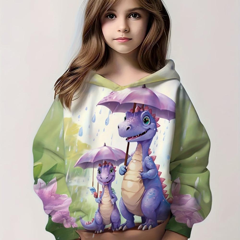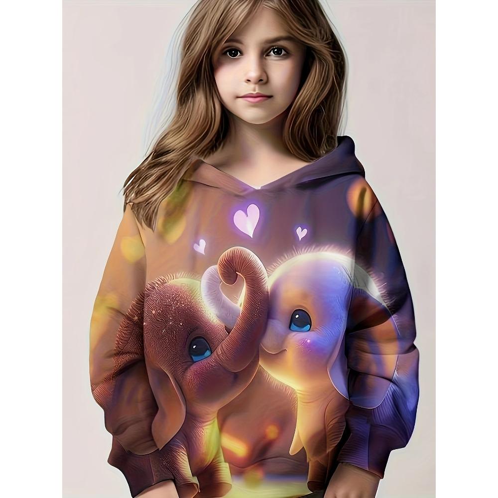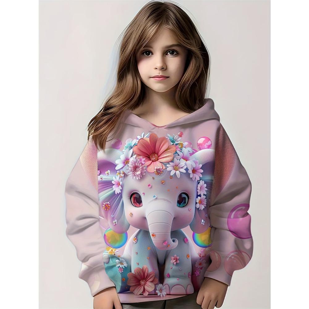 Детская одежда Толстовка с капюшоном для девочек Длинный рукав Милый 3D принт с животными Весна и осень Повседневная уличная одежда
