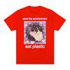 Футболка с милым рисунком кота «Спасите окружающую среду», «Ешьте пластик», «Забавная мужская и женская одежда с круглым вырезом», футболки, 100% хлопок, свободная футболка — купить товар онлайн с бесплатной доставкой по всему миру!
