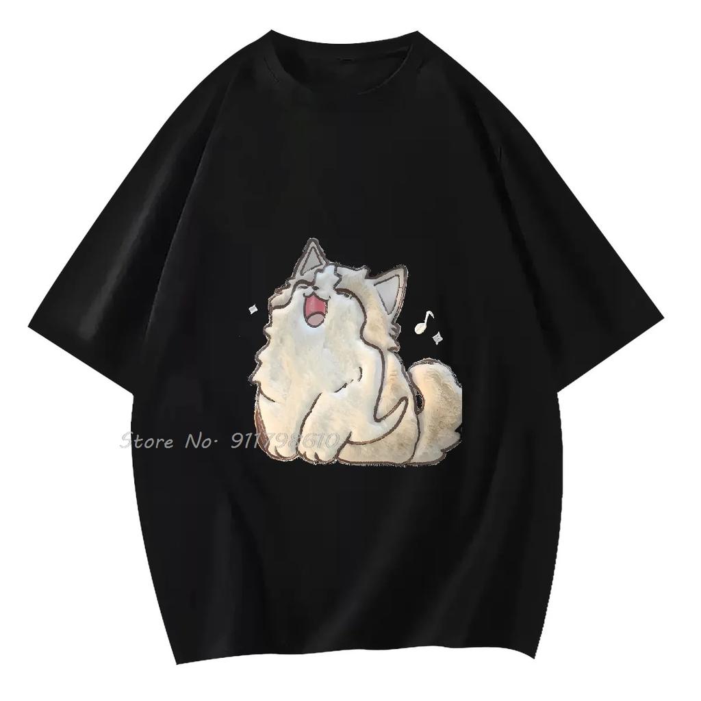 Модная забавная хлопковая футболка с принтом мультяшного кота, летняя повседневная футболка оверсайз в стиле Харадзюку с круглым вырезом, мужская одежда, унисекс топы и футболки