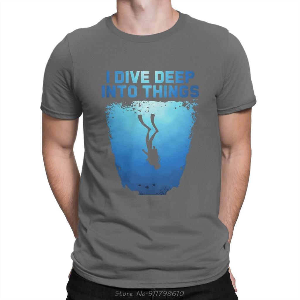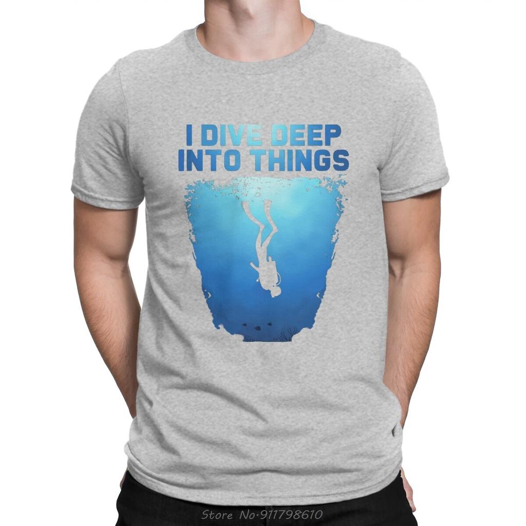 Я глубоко погружаюсь в вещи Футболка для дайвинга из чистого хлопка Топы Винтажная футболка с круглым вырезом Оверсайз Унисекс Мужская одежда Фитнес-футболка