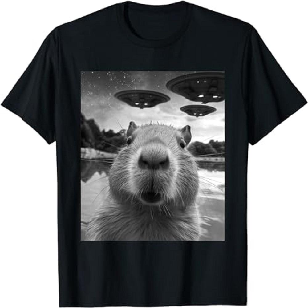Смешная графическая футболка Капибара Селфи с НЛО Странная футболка 80154