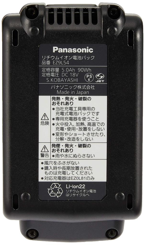 Panasonic Аккумуляторный блок 18 В, совместимый с большой нагрузкой, тип LJ EZ9L54, литий-ионный (Литий-ионный) Емкость 5,0 Ач/Тяжелый