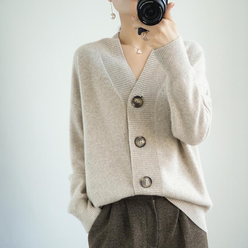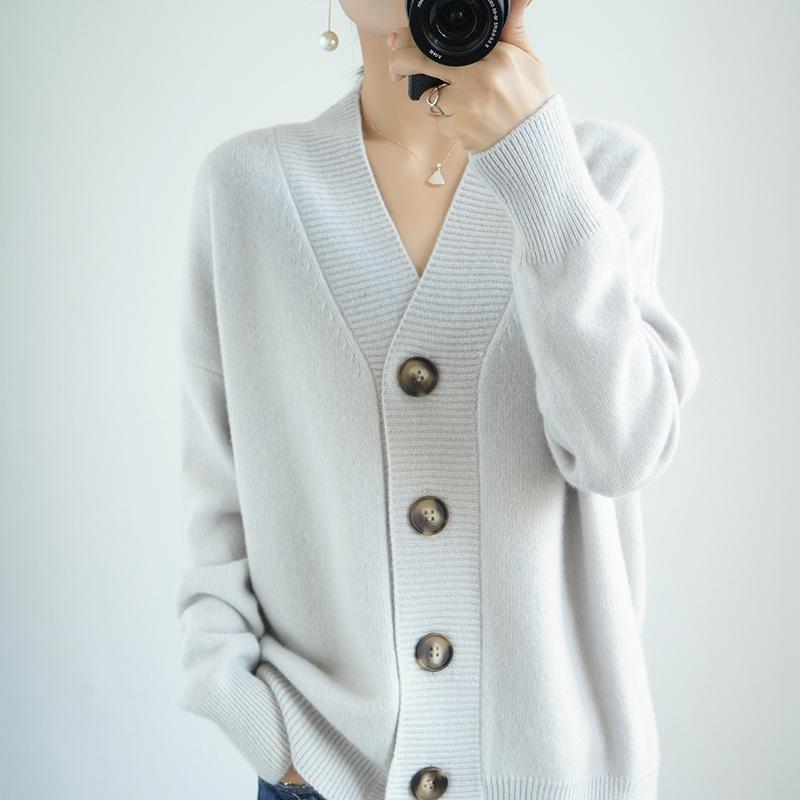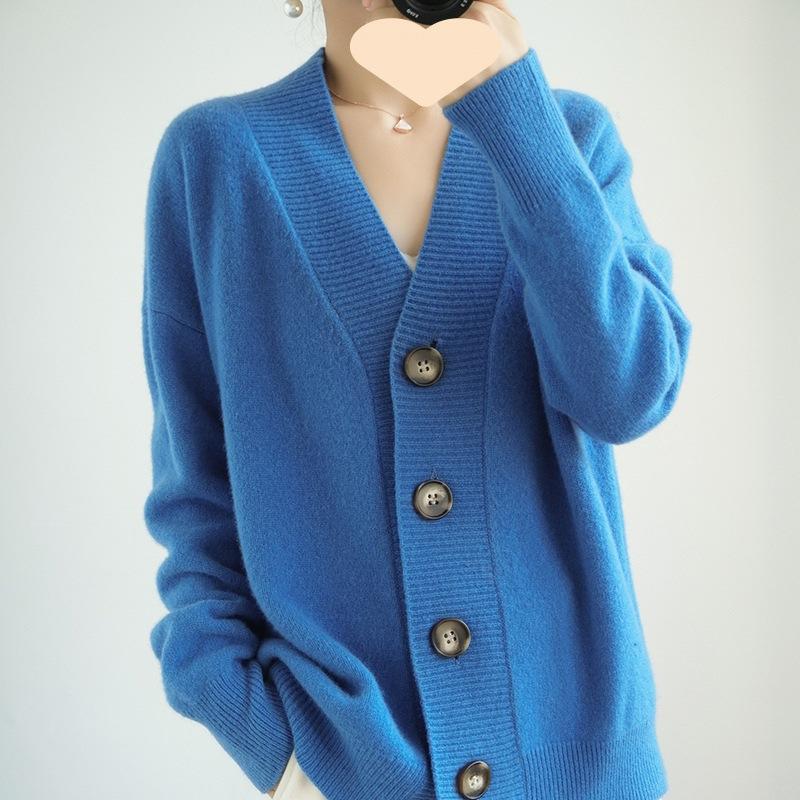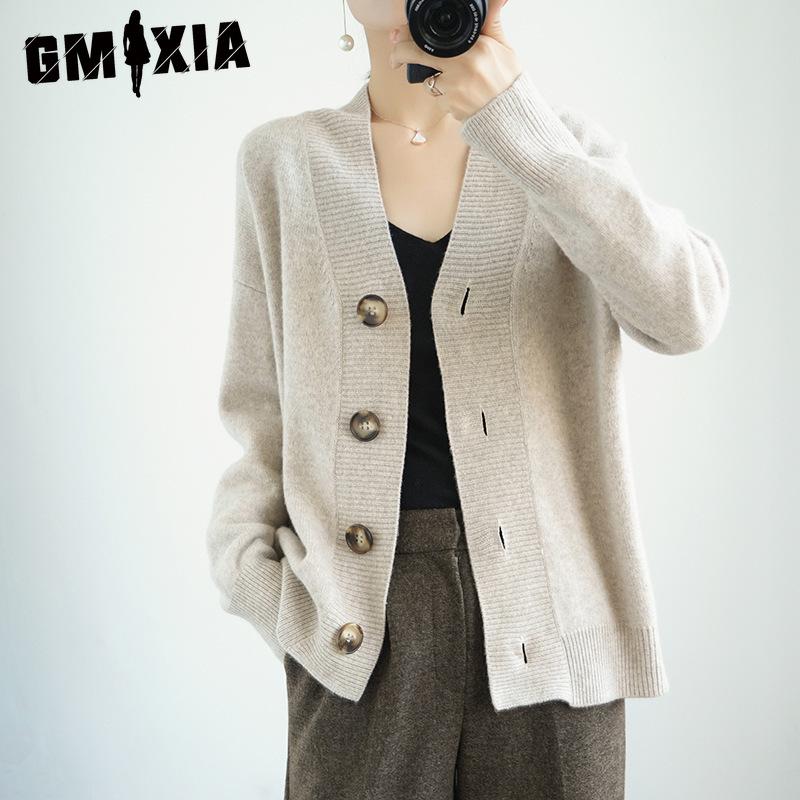 GMXIA Весенне-осенний вязаный свитер, свободный кардиган большого размера, женский свитер с воротником, однотонный на пуговицах, повседневное пальто