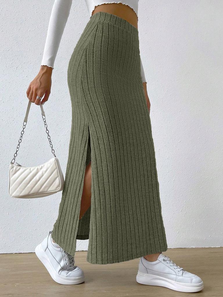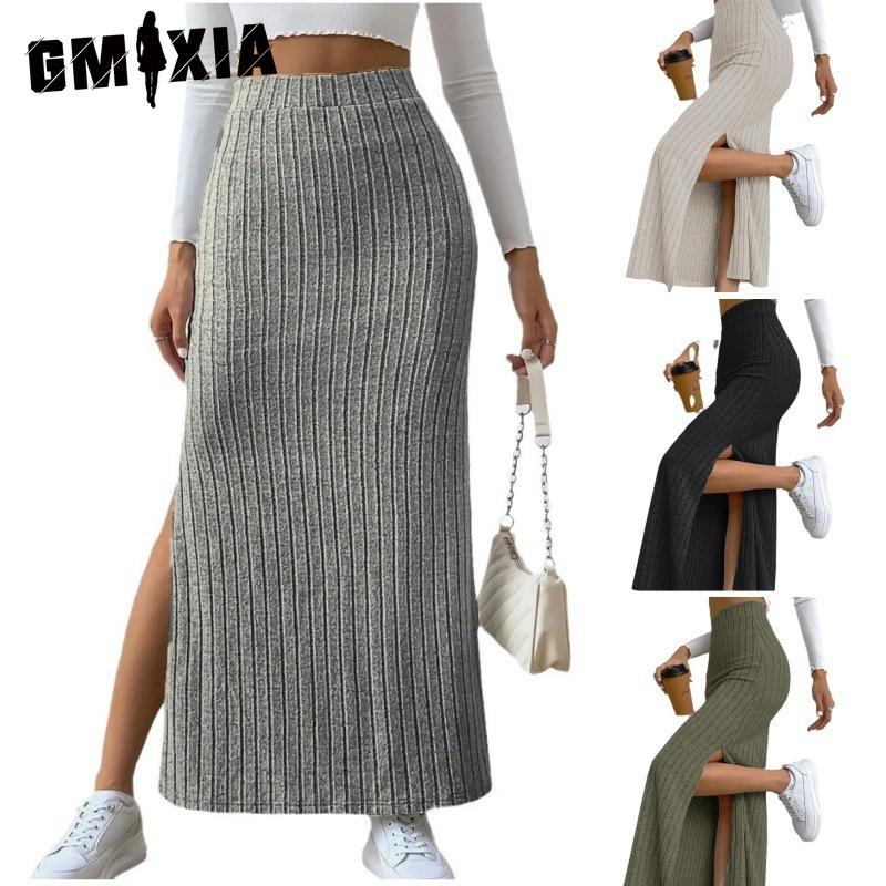 GMXIA Весна Лето Юбка женская вязаная облегающая однотонная с разрезом сбоку с высокой посадкой