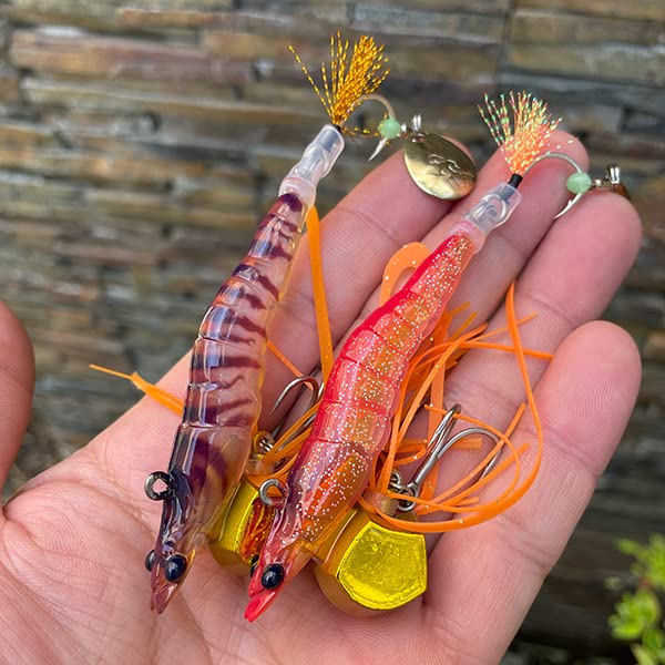 Он сочетает в себе реалистичное тело креветки из АБС-пластика с мигающим грузилом для предотвращения зацепов.