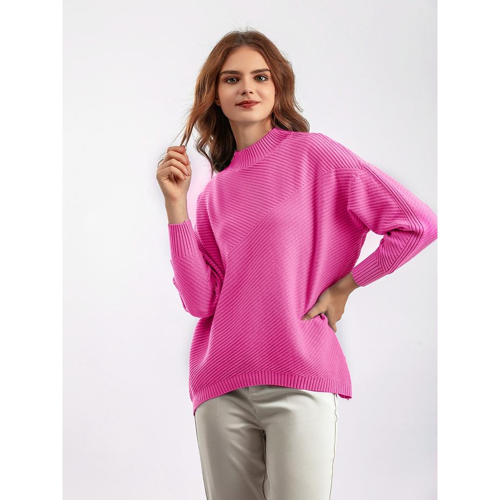 HNXC Осенне-зимний ретро свободный топ большого размера с длинным рукавом, однотонный пуловер, вязаный свитер, женский свитер с полувысоким воротником, базовый слой