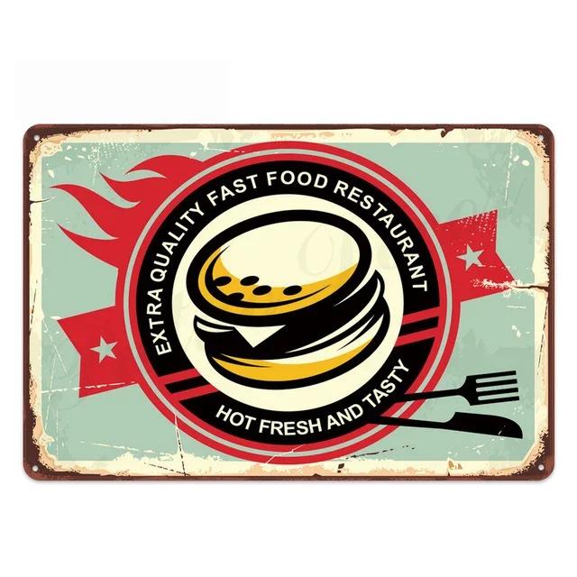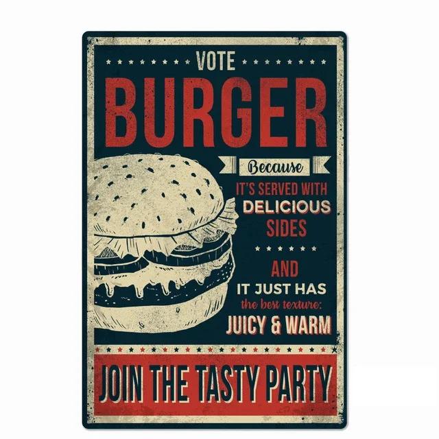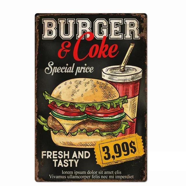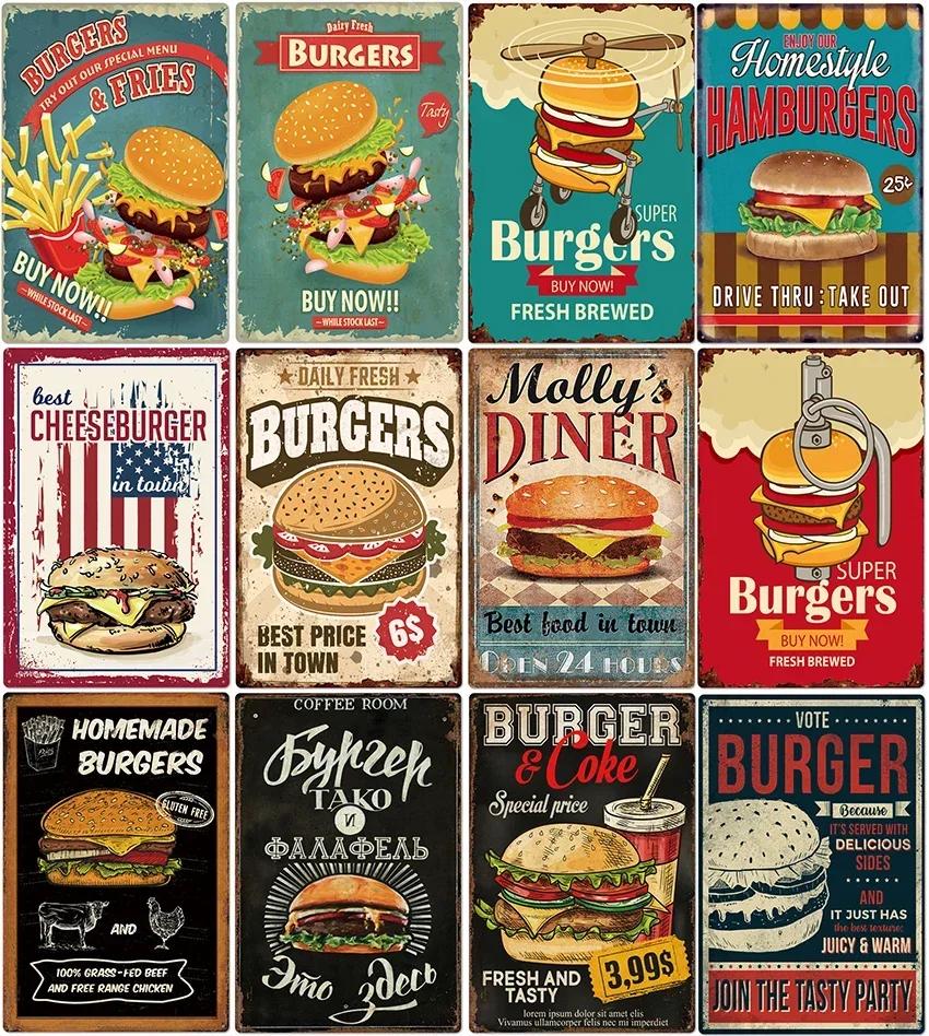 Вкусный Гамбургер Еда Знаки Металлические Таблички Барбекю Кухня Ресторан Магазин Жестяная Табличка Декоративные Постеры Ретро Железная Живопись