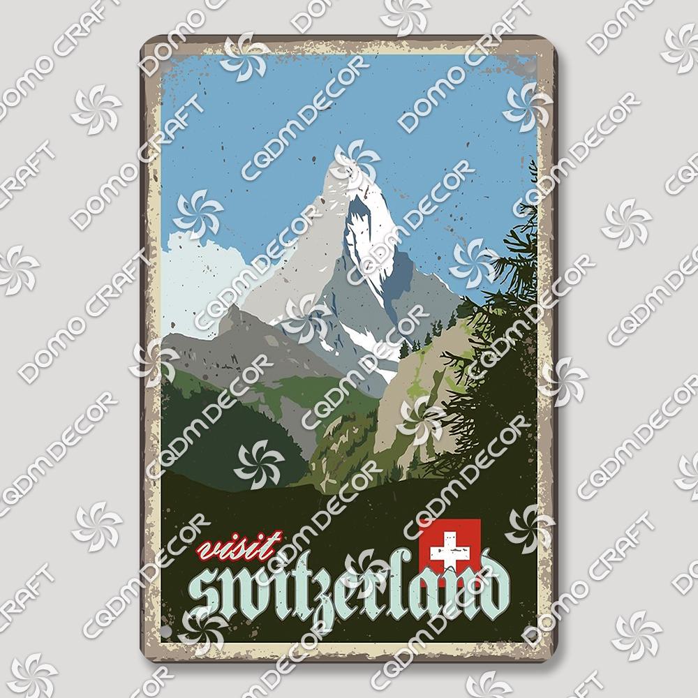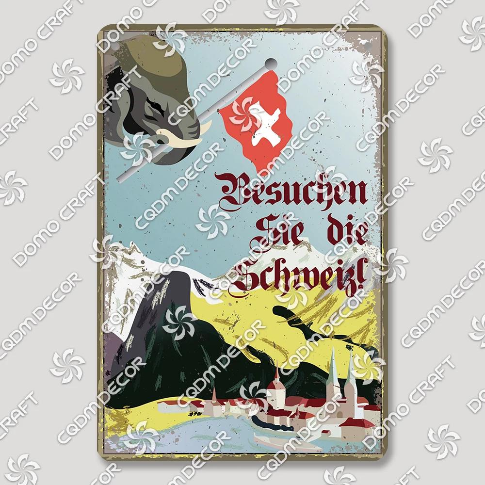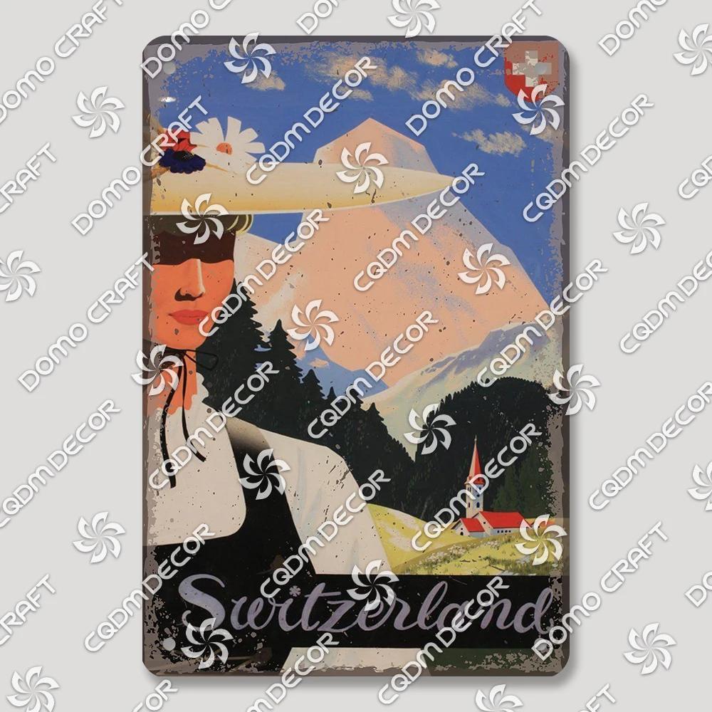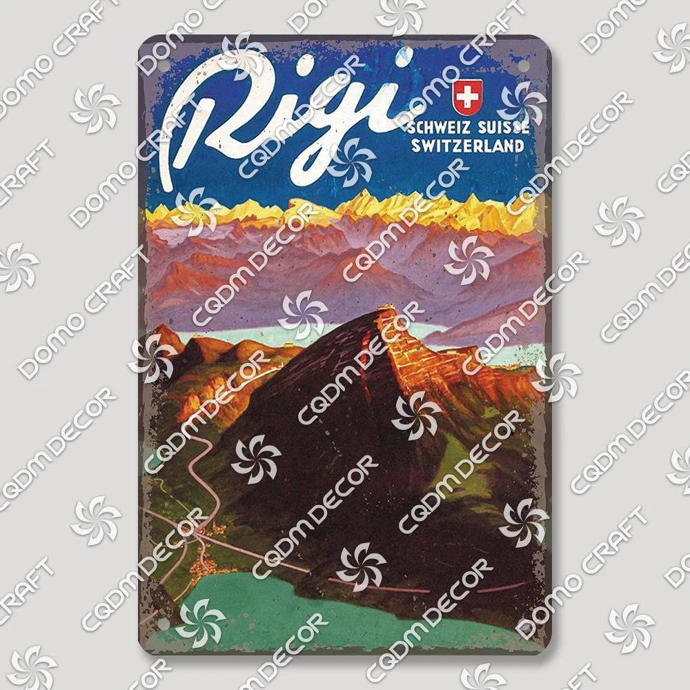 Швейцария Пейзажная Табличка Жестяная Вывеска Металлический Постер Цюрих Монтрё Риги Альпы Металлические Тарелки Ретро Настенный Декор Кафе Гостиная Дом