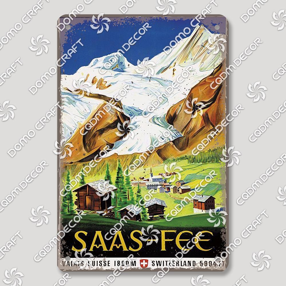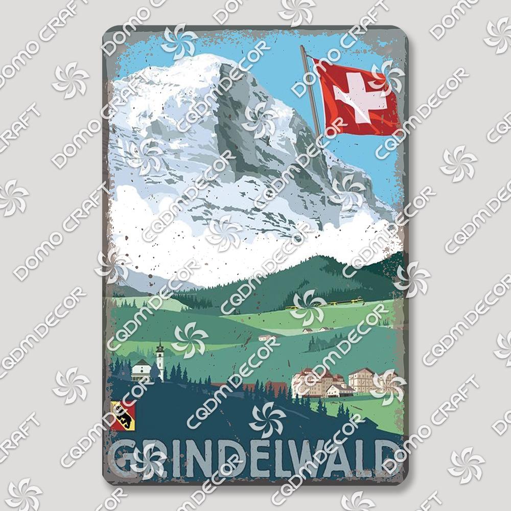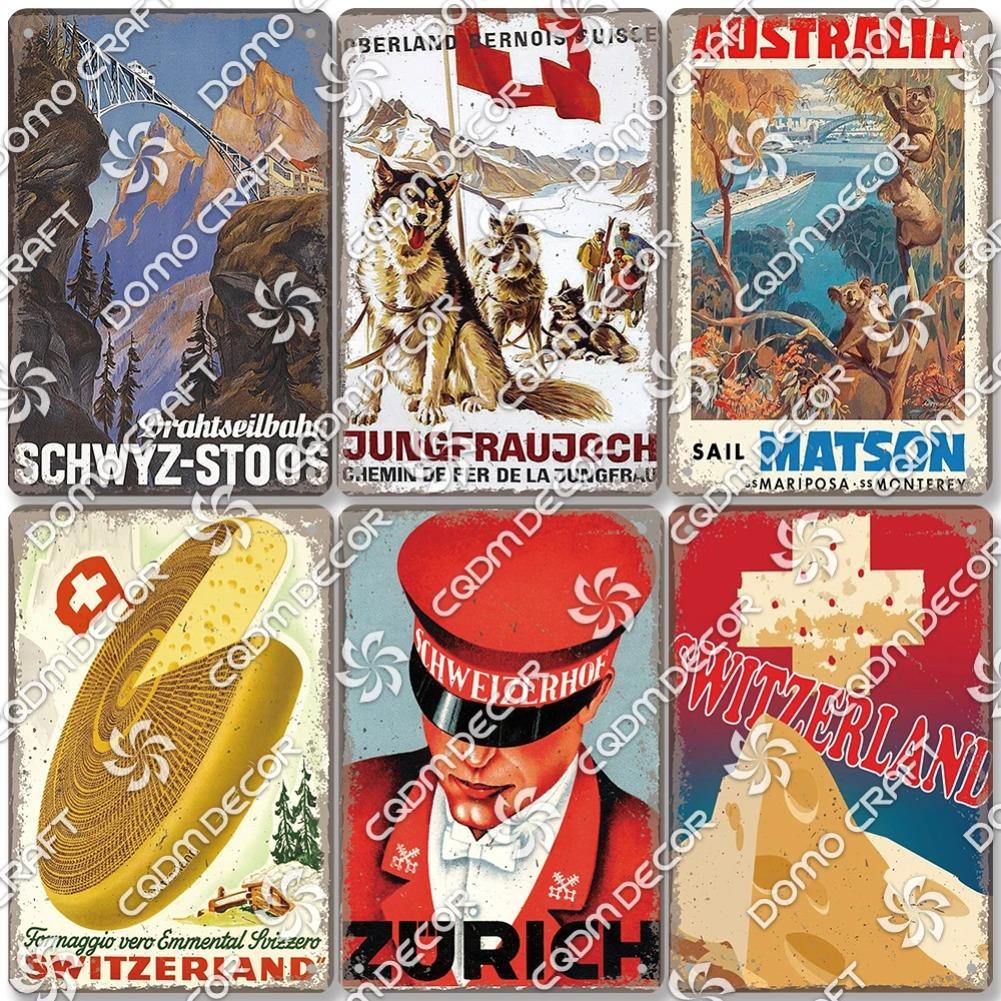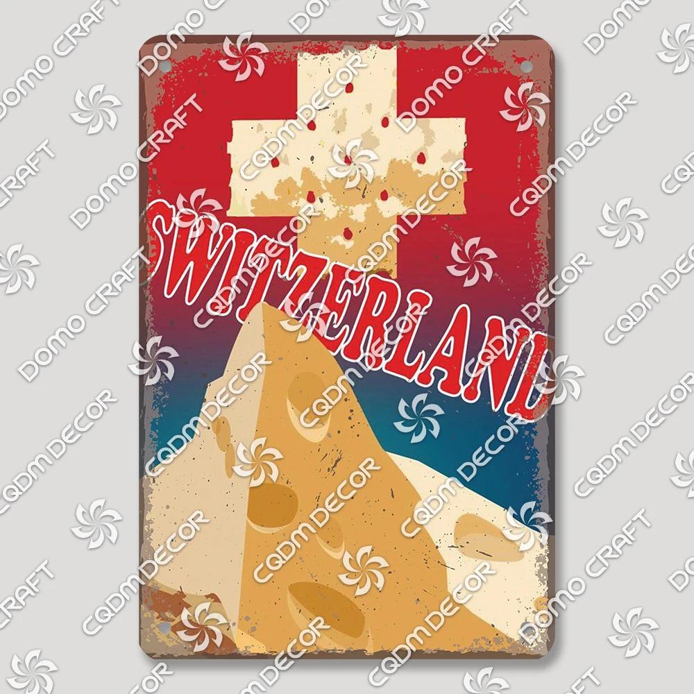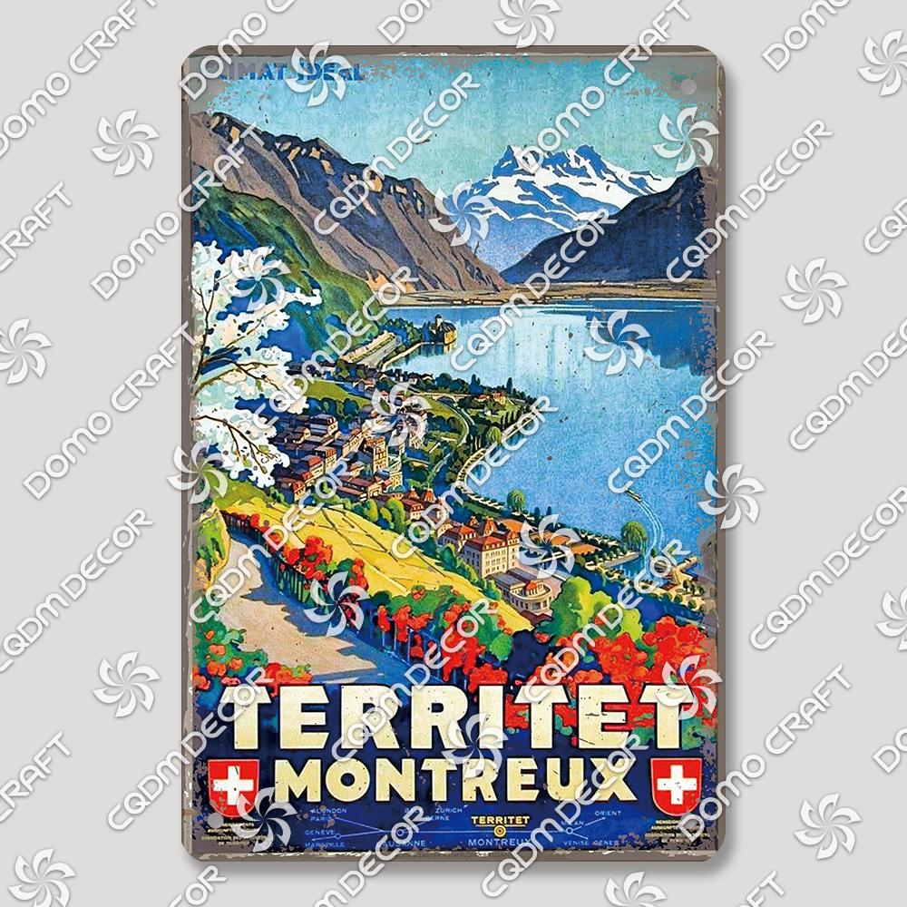 Швейцария Пейзажная Табличка Жестяная Вывеска Металлический Постер Цюрих Монтрё Риги Альпы Металлические Тарелки Ретро Настенный Декор Кафе Гостиная Дом