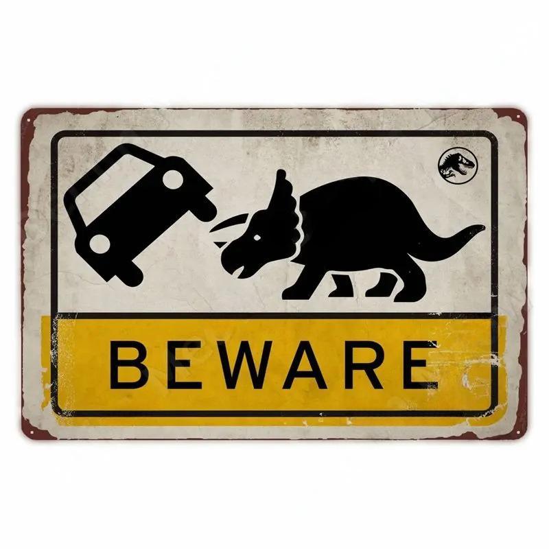 Металлические таблички FJ Осторожно Раптор Смешные постеры Знак Сбавь скорость Сад Дом Стена Улица Зоопарк Табличка Декор Динозавр