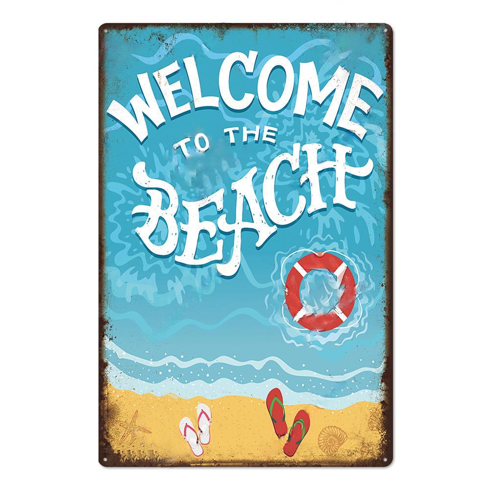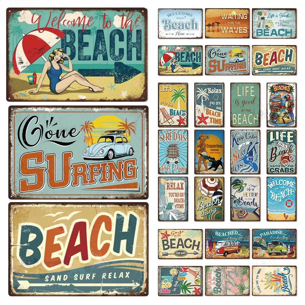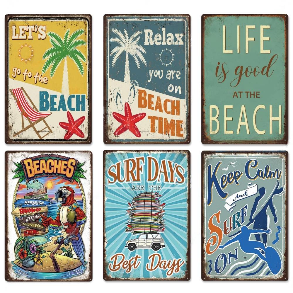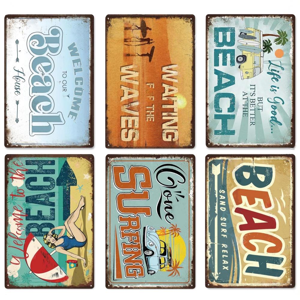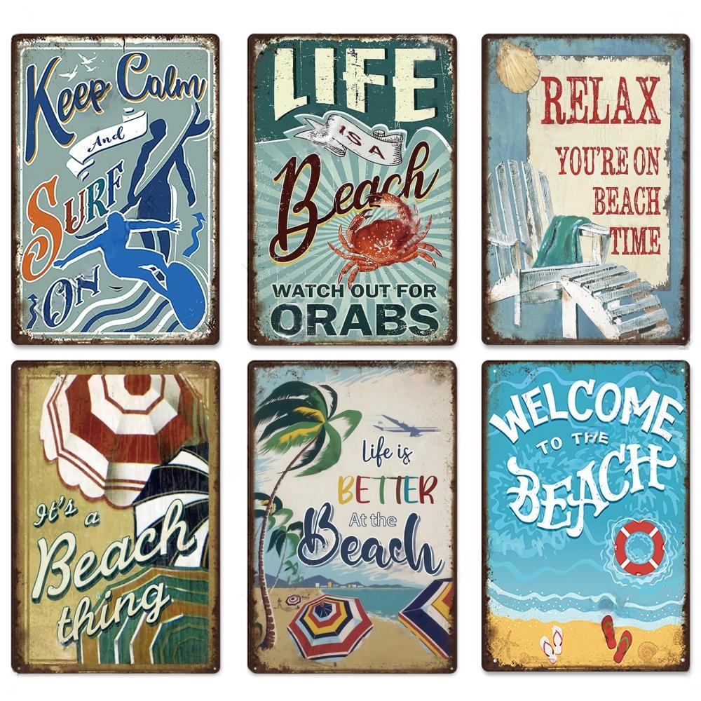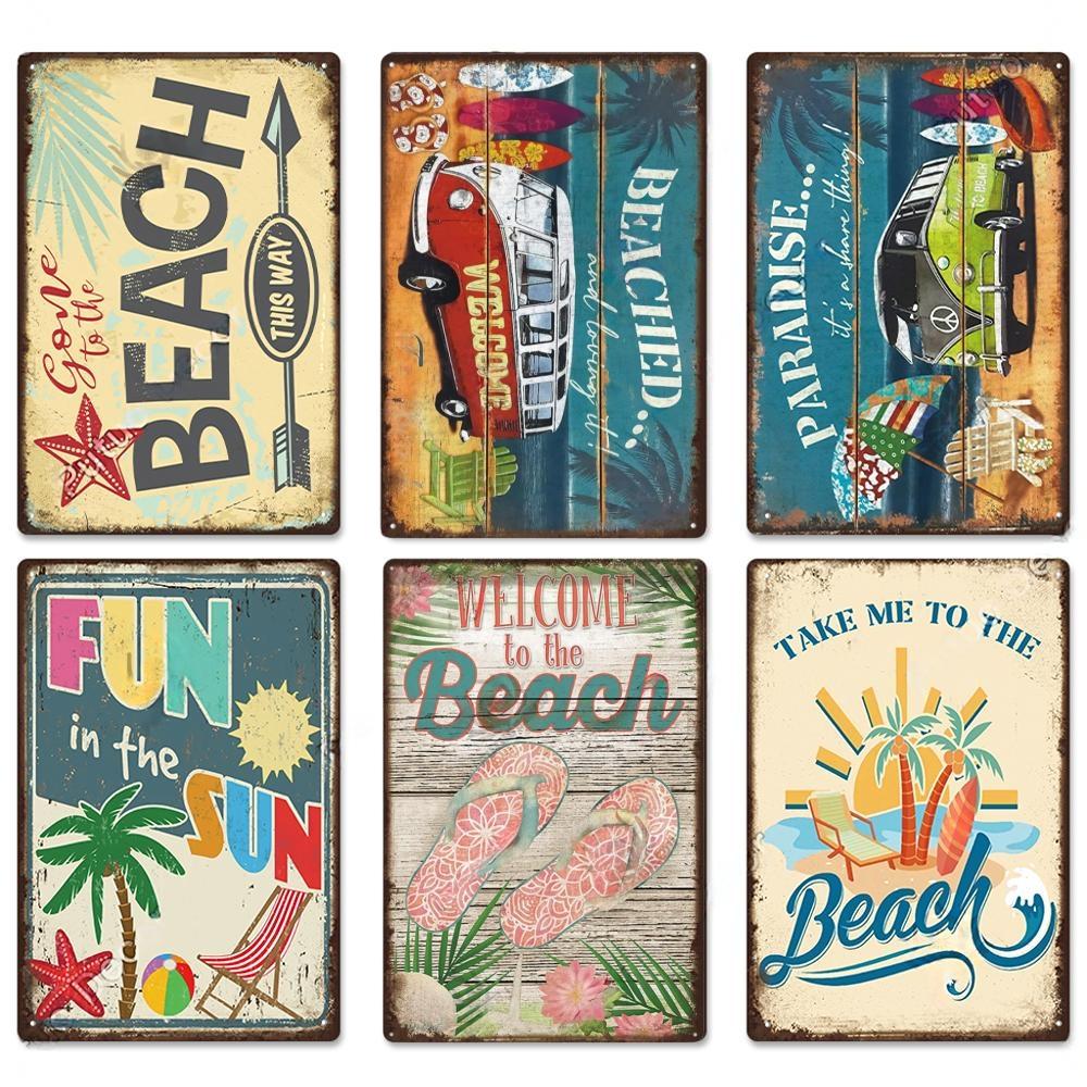 Летний пляжный декор Винтажные металлические жестяные таблички Табличка Металлическая пластина Ретро постеры Настенный декор Морской