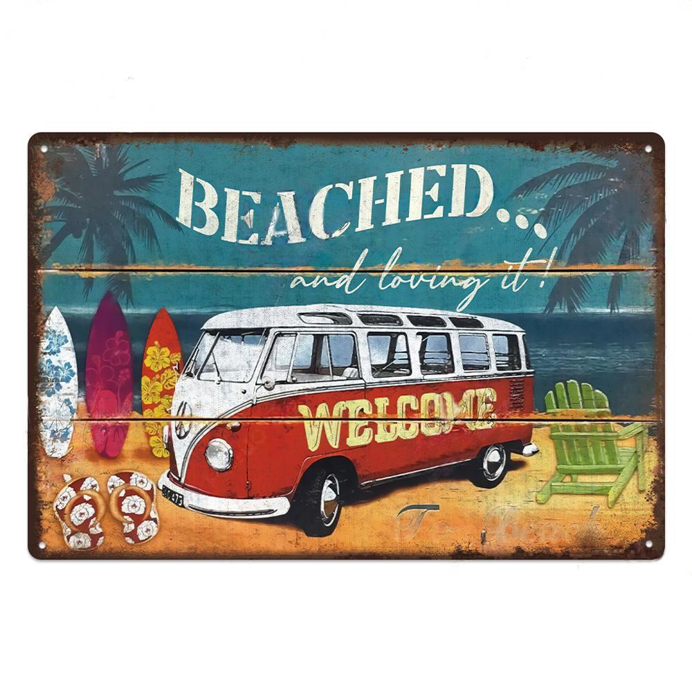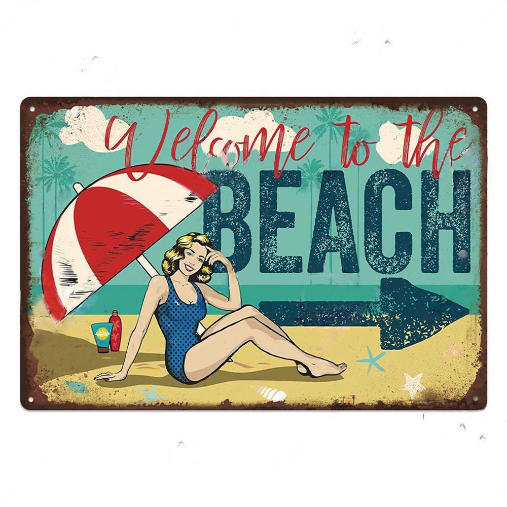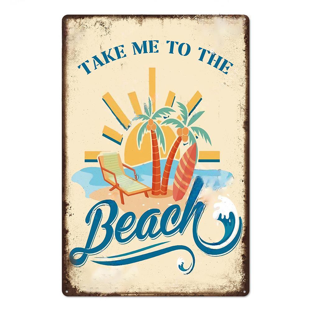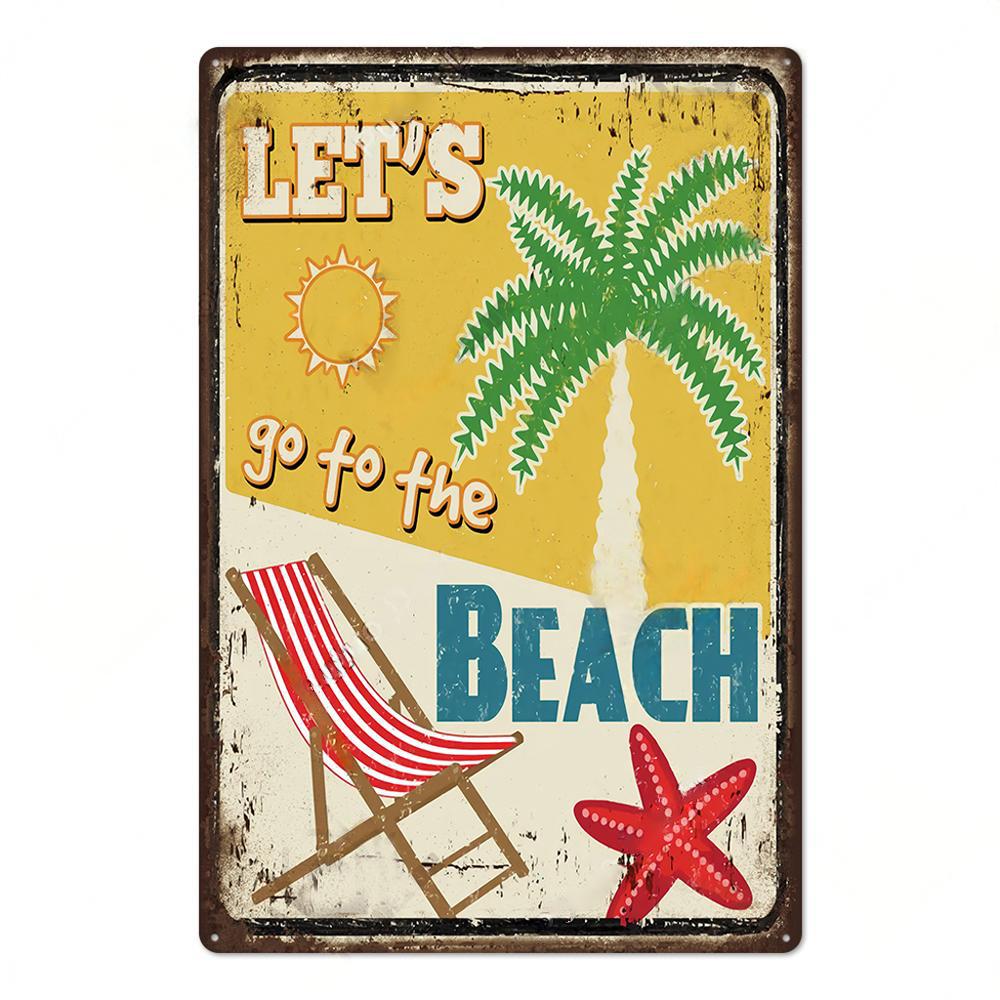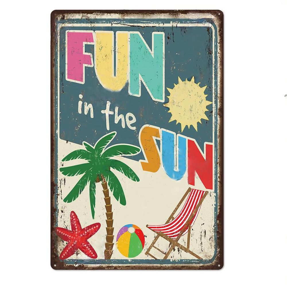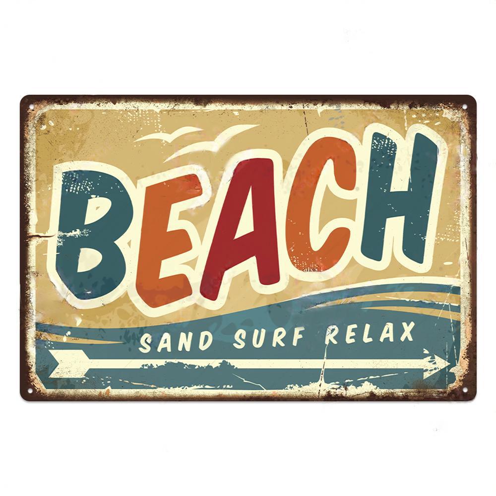 Летний пляжный декор Винтажные металлические жестяные таблички Табличка Металлическая пластина Ретро постеры Настенный декор Морской