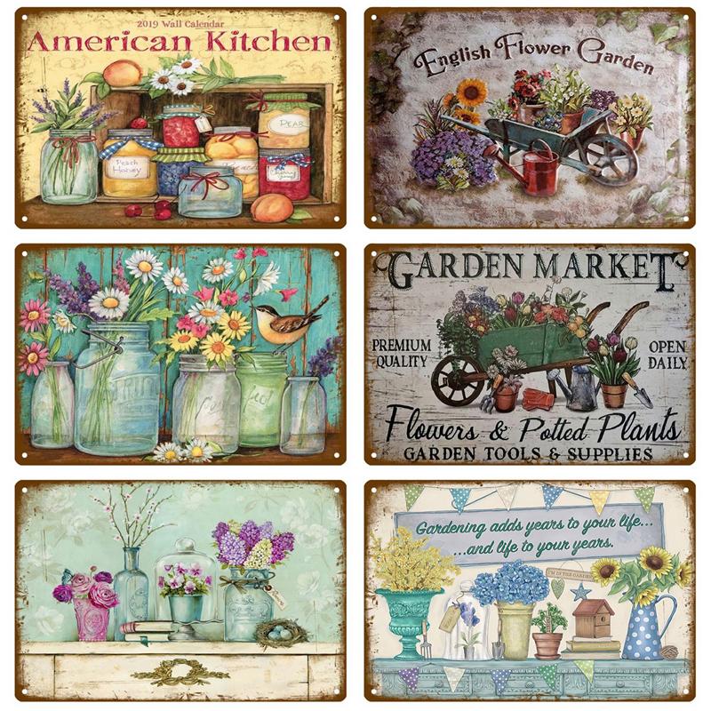 Ретро Жестяная Табличка Постер Сад Винтажный Настенный Постер Металлическая Табличка Декоративная Настенная Тарелка Цветочная Табличка Металлический Винтажный Декор Аксессуары