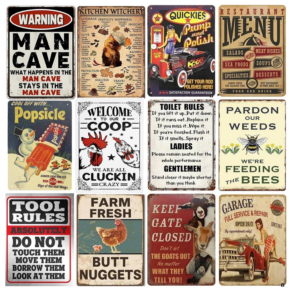 Винтажные таблички для мужской пещеры Курятник Ферма Гараж Настенный декор Жестяная табличка Потертая Ржавая Постерная доска Украшение Жестяная живопись Металлические пластины