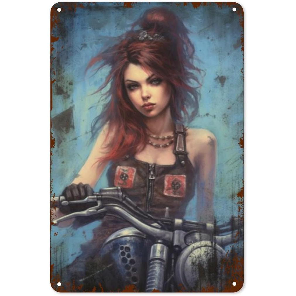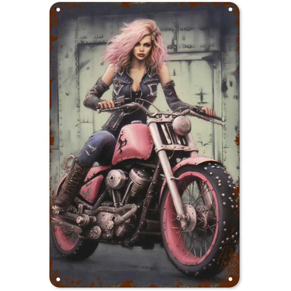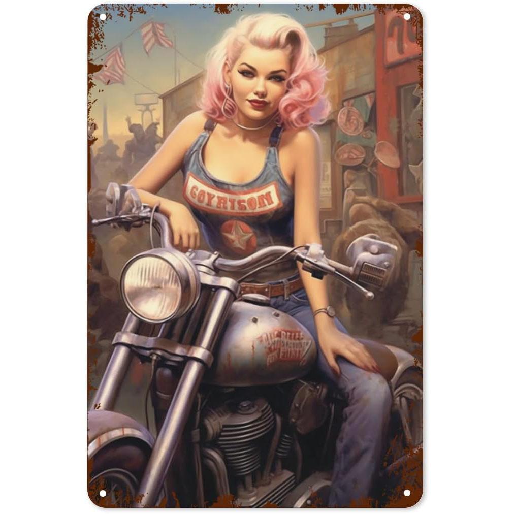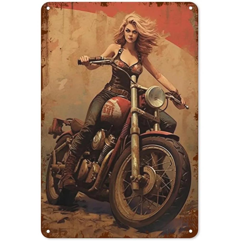 Металлические жестяные таблички Пин-ап Мотоциклистка Настенное украшение Табличка Винтажный постер Железная живопись для мужской пещеры Дома Кафе Сада Клуба Бара