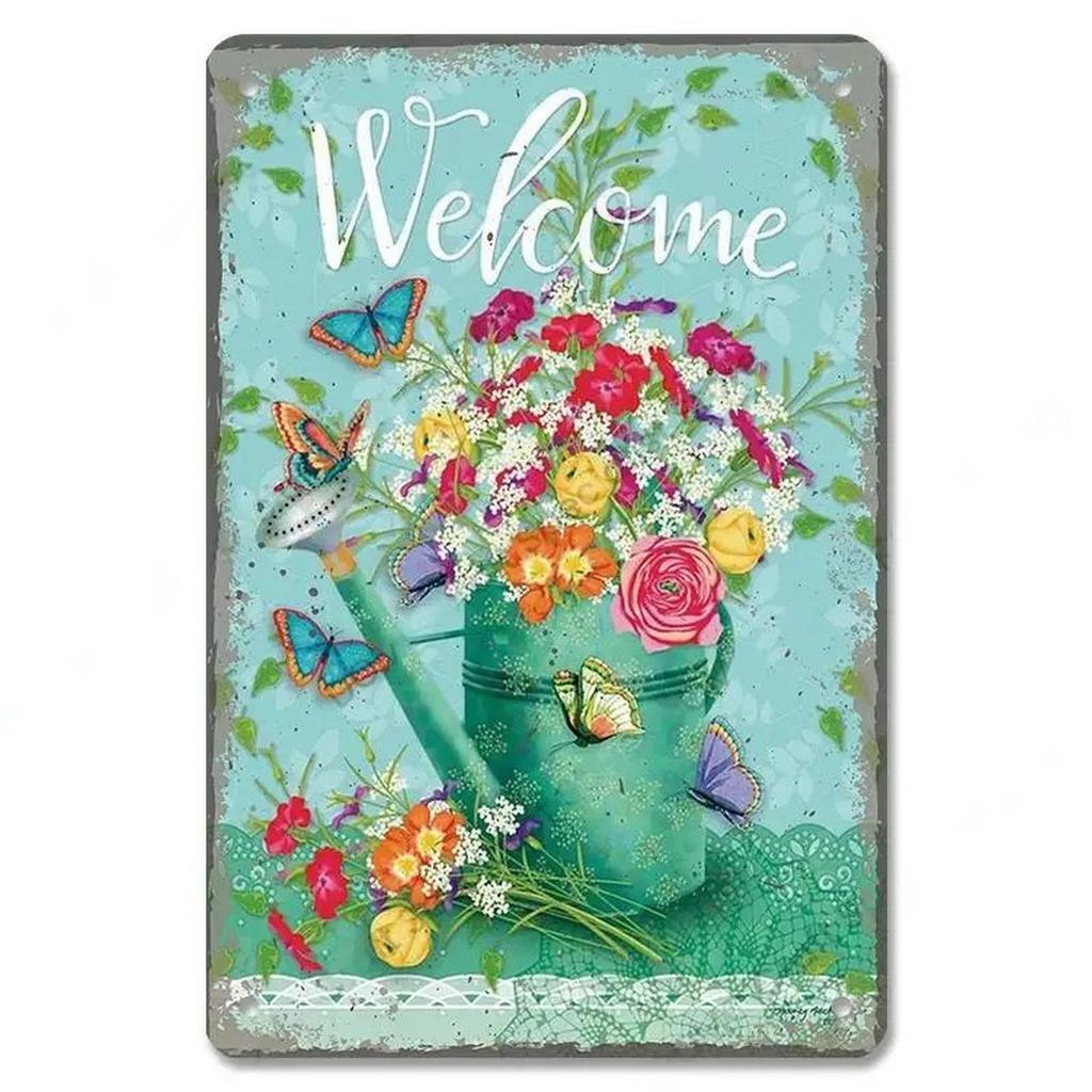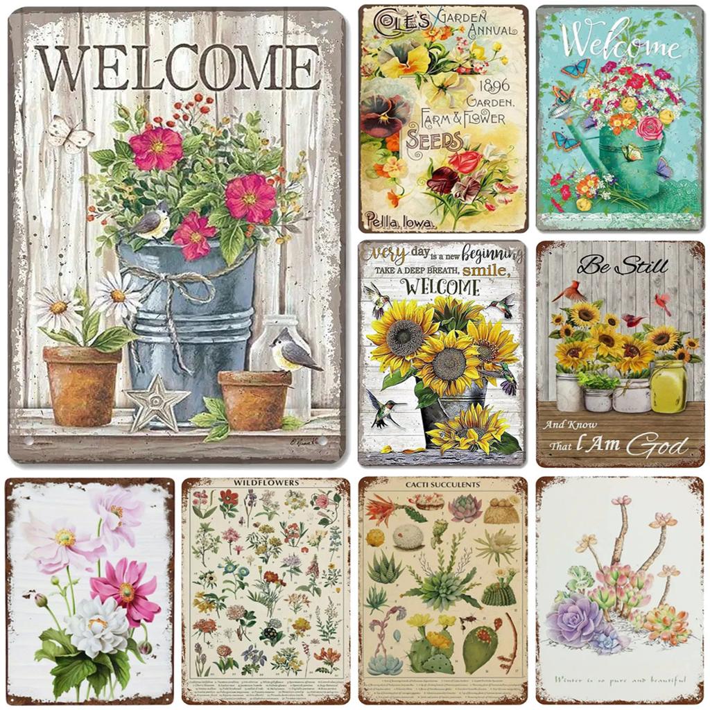 Добро пожаловать Металлические жестяные таблички Цветы Настенное украшение Табличка Винтажный художественный плакат Железная живопись для мужской пещеры Дома Кафе Сада Клуба Бара